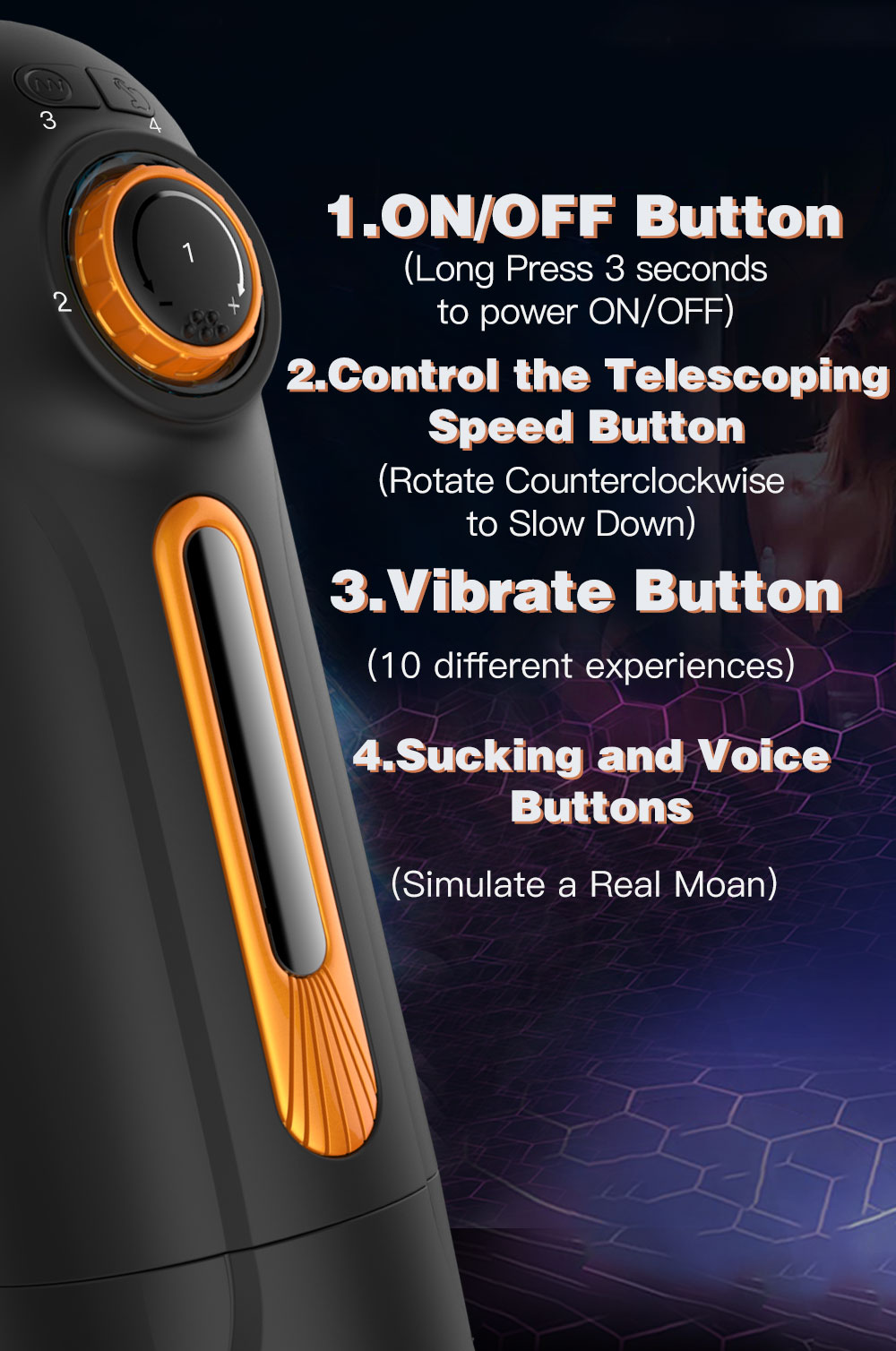 【Оргазм в один клик делает вас более комфортным】 В этом мужском мастурбаторе используется новейшая технология вакуумной накачки для более реалистичной имитации процесса глотания и плевания во время орального секса и полового акта. Когда вы закончили подготовку к эякуляции, попробуйте эту функцию оргазма, чтобы сделать хорошую эякуляцию в сопровождении вашего любимого способа.